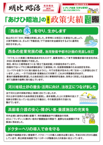 ②コロナ対策配慮の必要もありますが、各種行事や会議などで「明比昭治」が挨拶や、県政報告などをさせて戴く機会を紹介・ご連絡をお願いします。